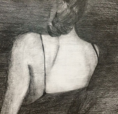 暗闇に背中。2015年に作画した鉛筆画。クロッキーからのブラッシュアップ。